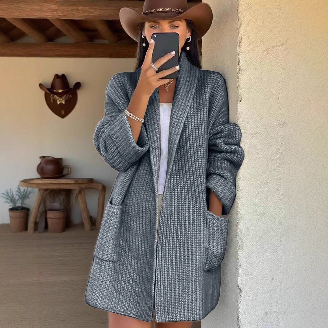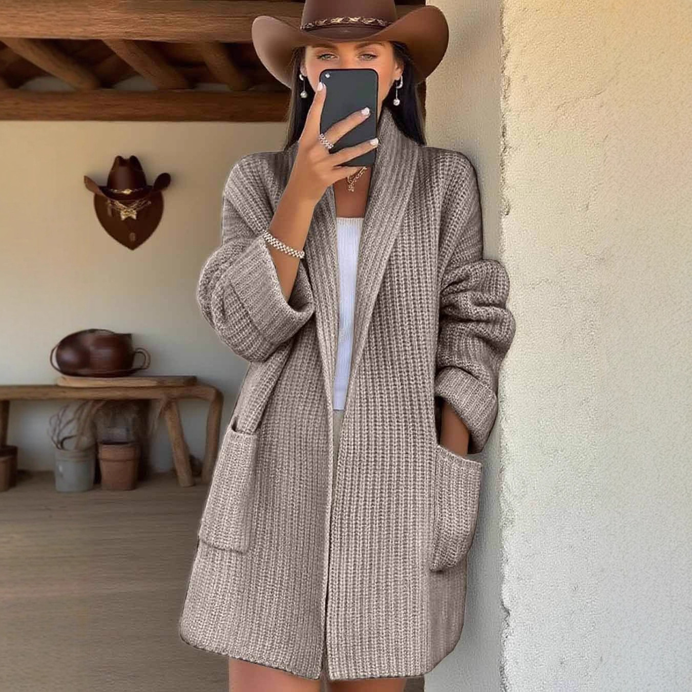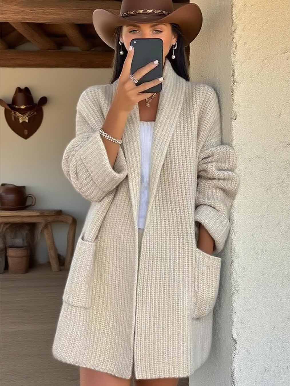 2025 Sheintemu Autumn And Winter Western Wind Long Sleeve Collar Sweater Cardigan HZ1208
