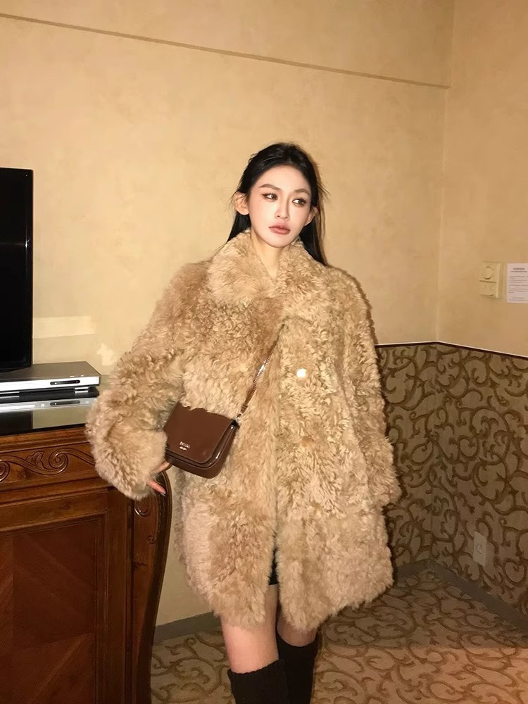 2025 Urchin Toka Fur Coat Teddy Curly Wool Coat Warm Royal Sister Wind HZ1208