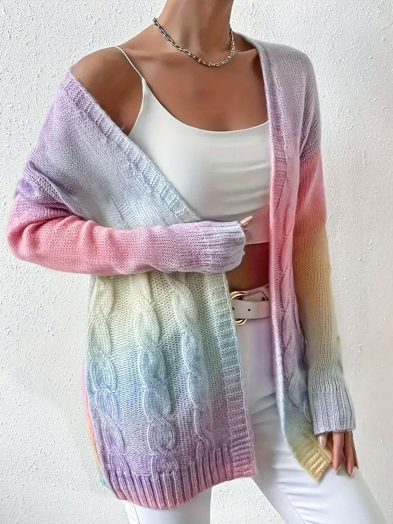 Autumn And Winter Sweater Women's Cardigan Coat Rainbow Tie-Dyed Mahjong Long-Sleeved Knitwear HZ1208