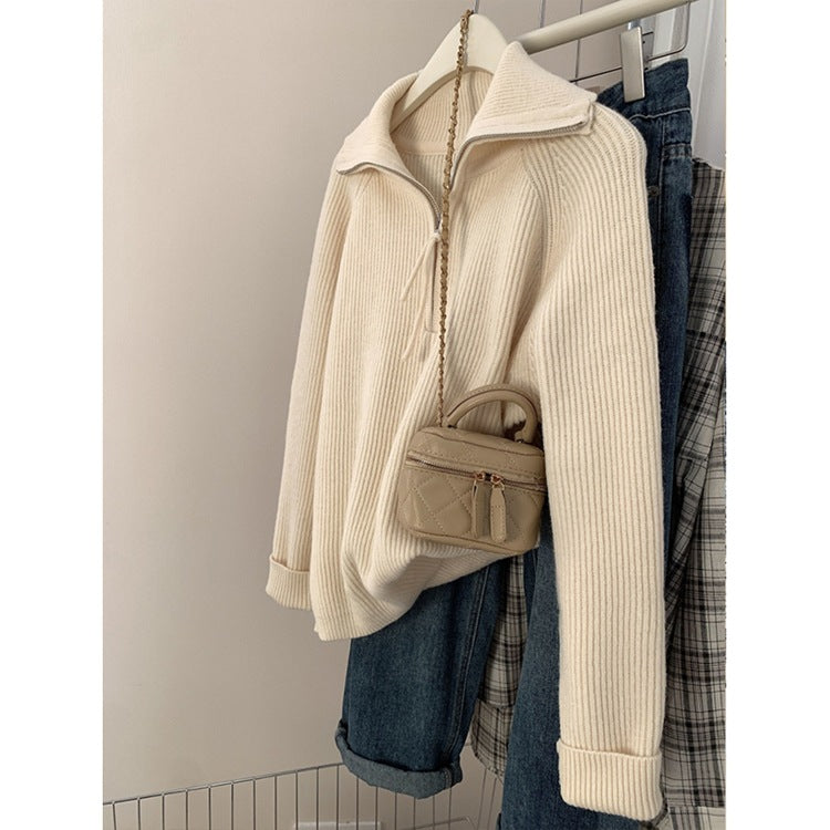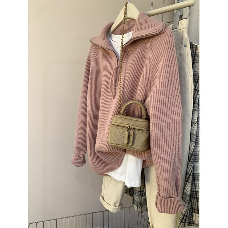 Korean Gray Half-Zip Sweater Women Wear Soft-Creating Knitted Knitted Jacket Coat Tops In Autumn And Winter HZ1208