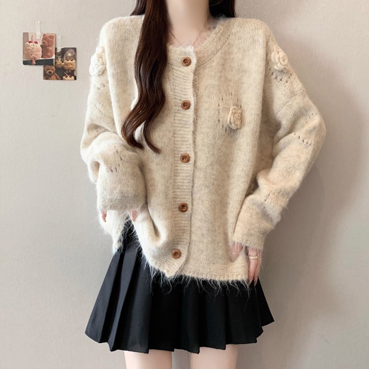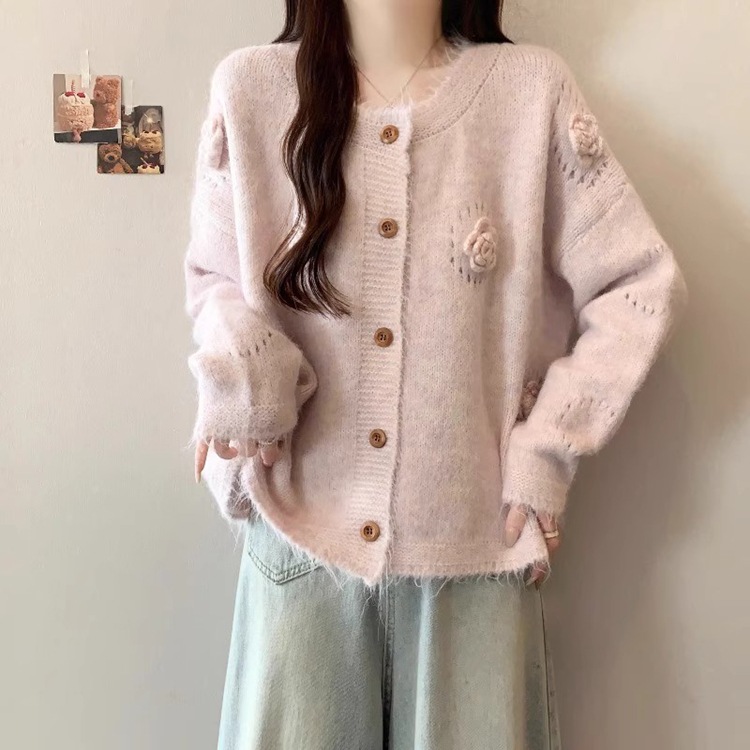 Korean Small Fresh Three-Dimensional Flowers Knitted Shirt Women Autumn And Winter New Design Sense Age-Sensitive Sweater Coat Women HZ1208