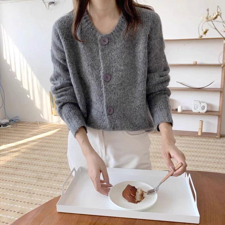 Sweater Coat Women's Autumn And Winter Loose Wear Complex 2025 New Short Top Knitted Cardigan Thicken HZ1208