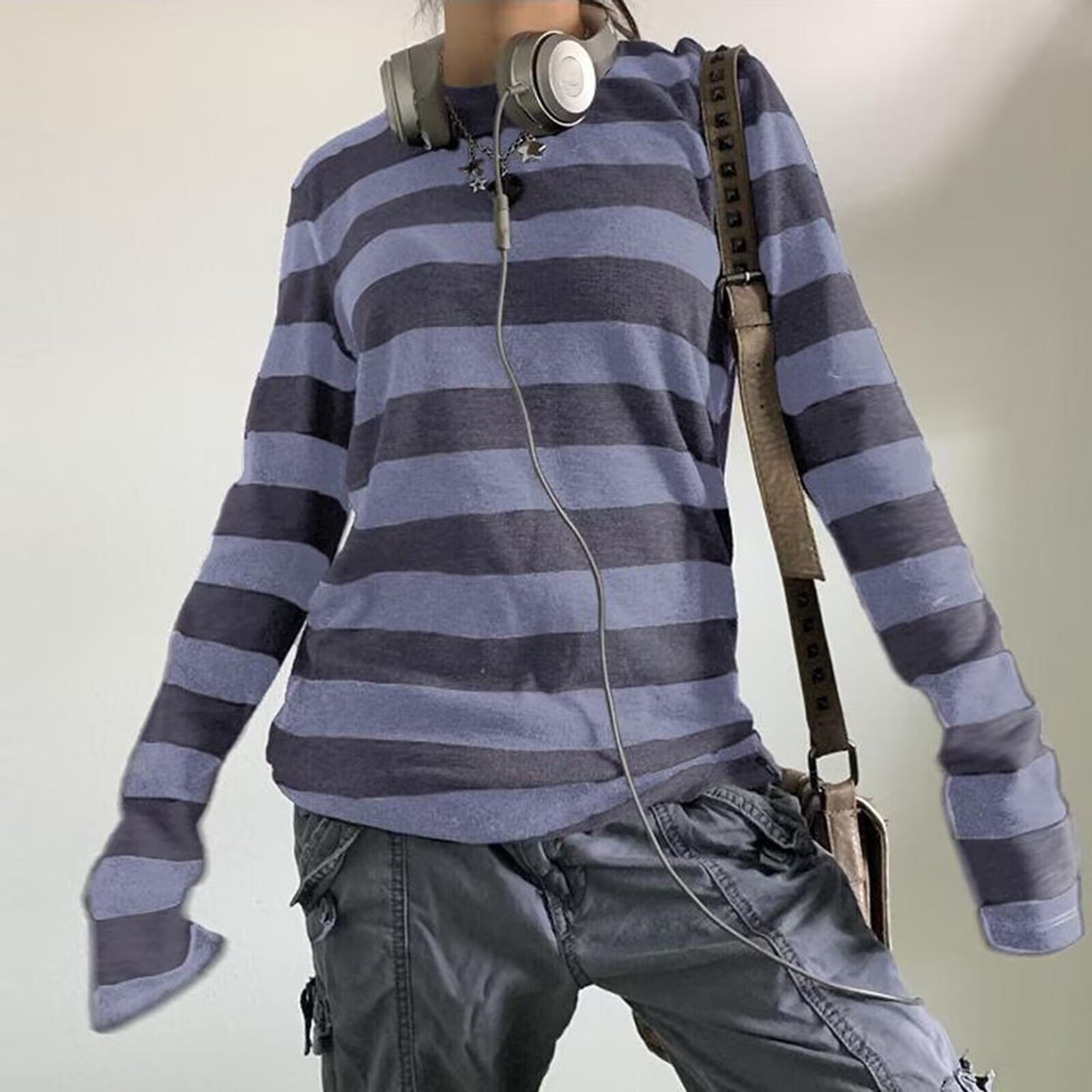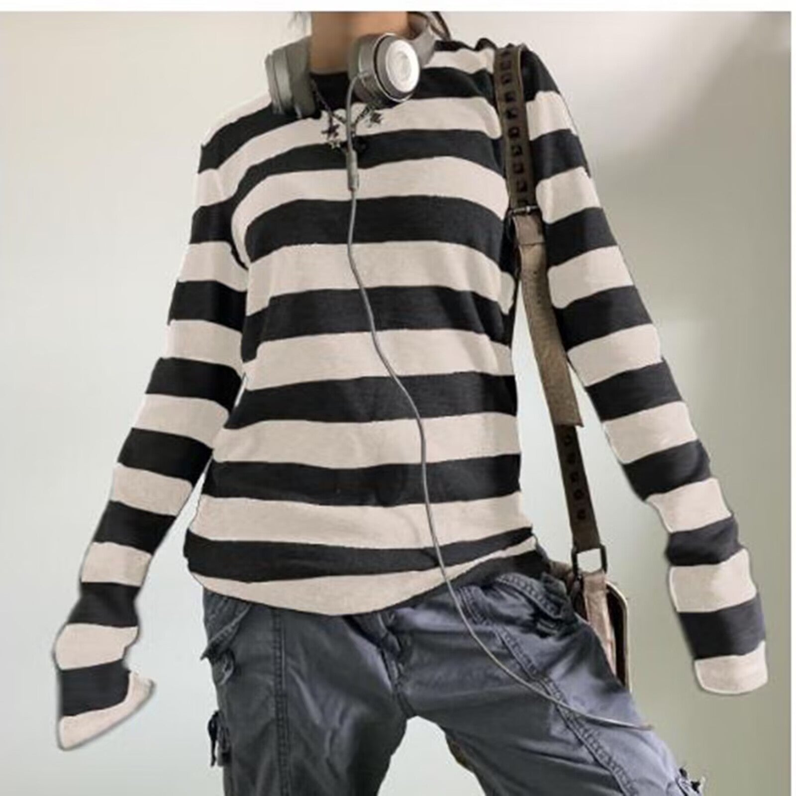 New Loose Leisure Stripes Cotton Commuting Ins Long Sleeves HZ1208