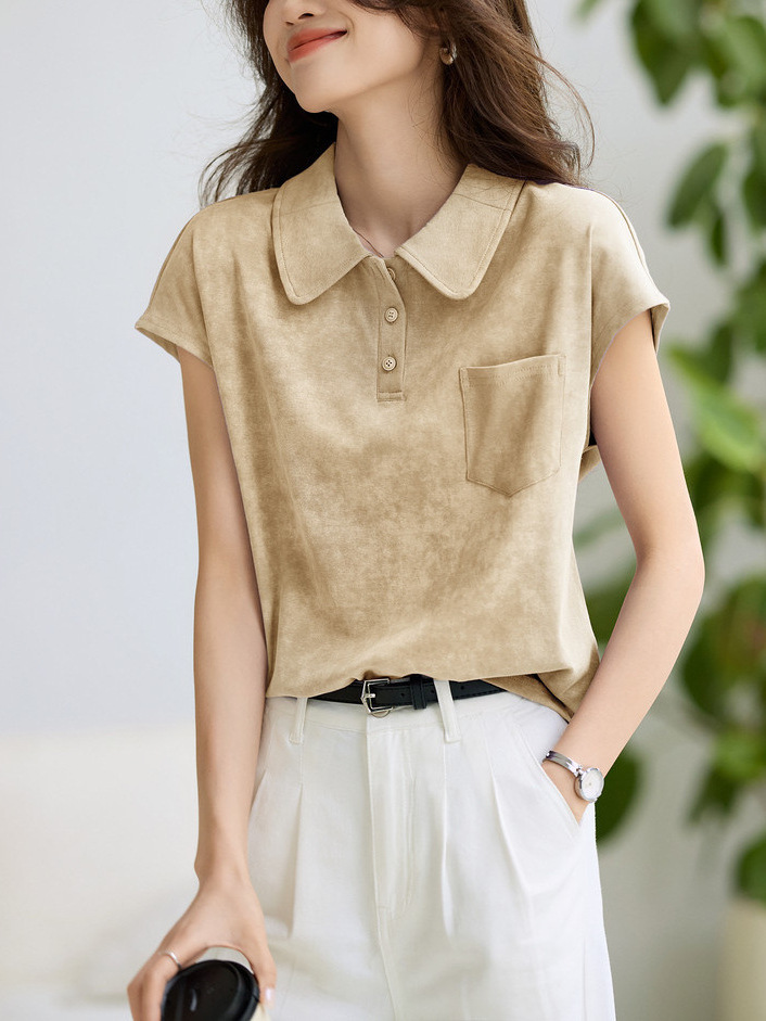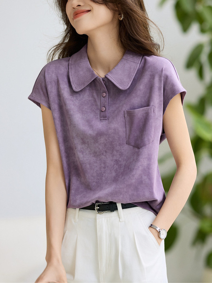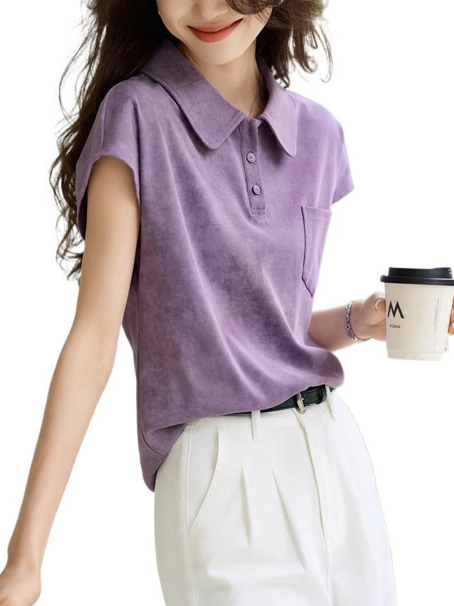 This Year's Popular Purple Sleeve Short-Sleeved T-Shirt 2025 Summer New Shoulder-To-Shoulder POLO Shirt Look Good HZ1208