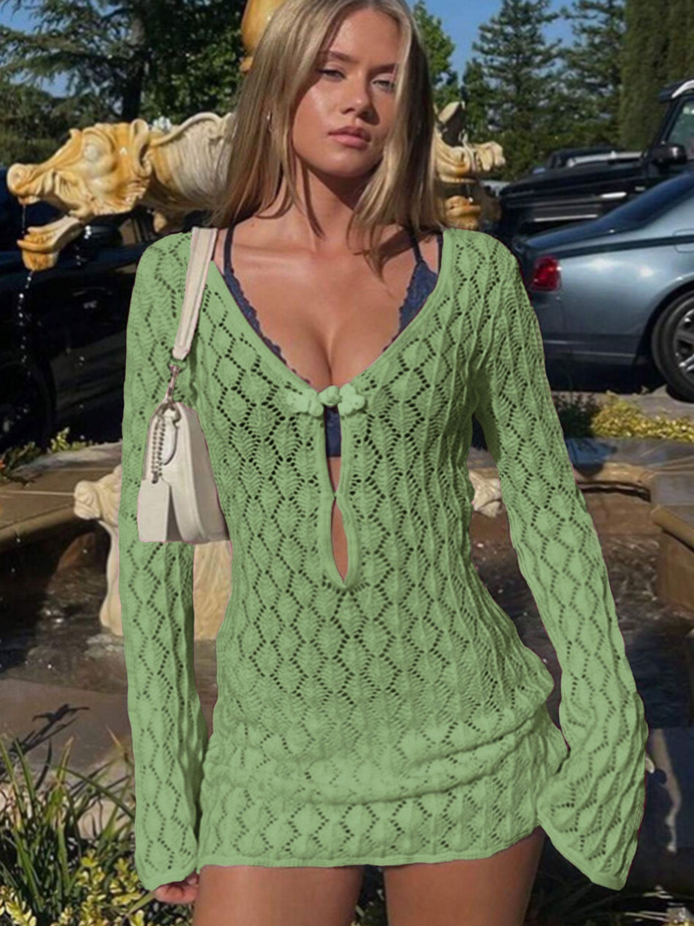 New Beach Skirt Knitted Long-Sleeved Ass Bikini Swimsuit Burqa Holiday Sunscreen Woman HZ1208