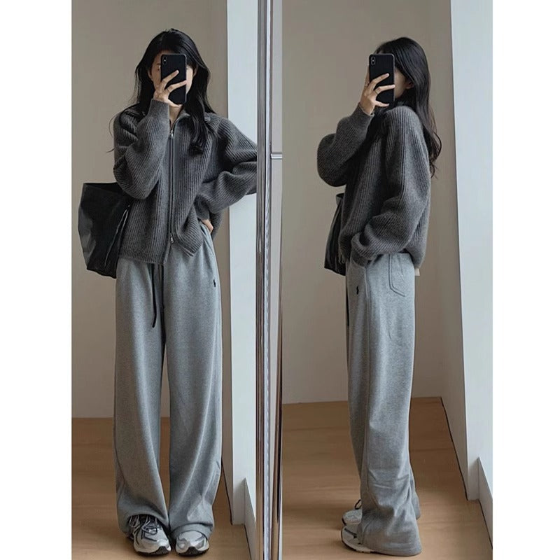 Sweater Woman Retro Hong Kong Flavor New Chic Korean Version Of The Collar Zipper Knitted Open Shirt Lazy Wind Loose Thick Coat HZ1208