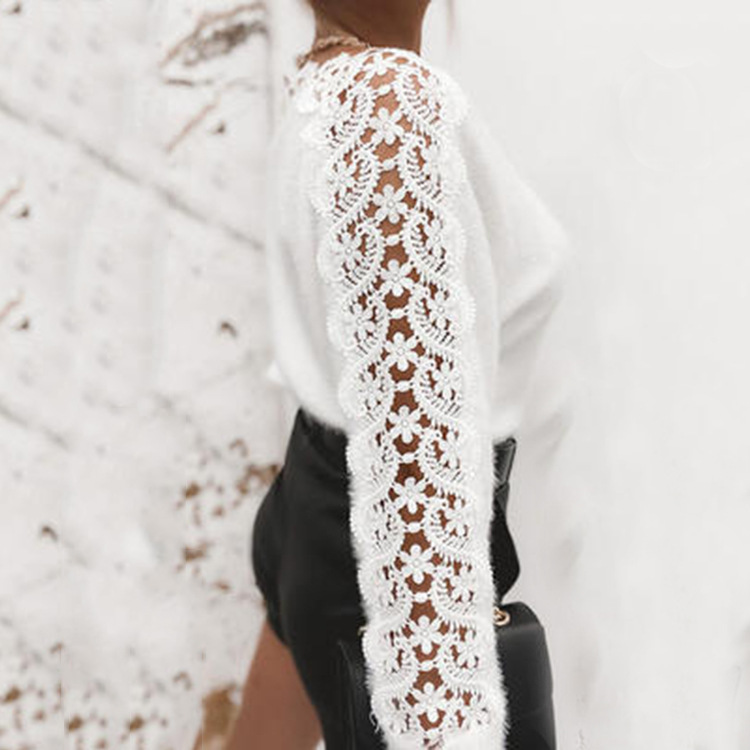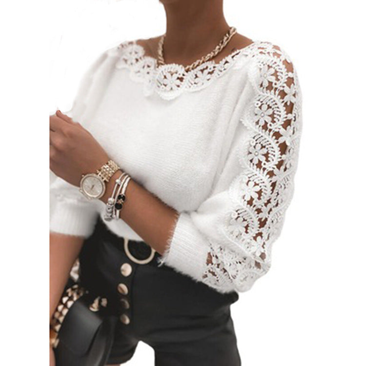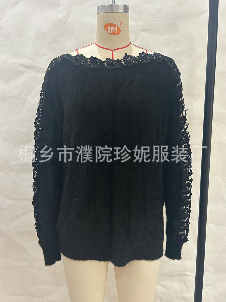 Wish Women's Sweater 2025 Winter V-Neck Lace Spliced Solid Color Long-Sleeved Knitted Shirt Tide HZ1208