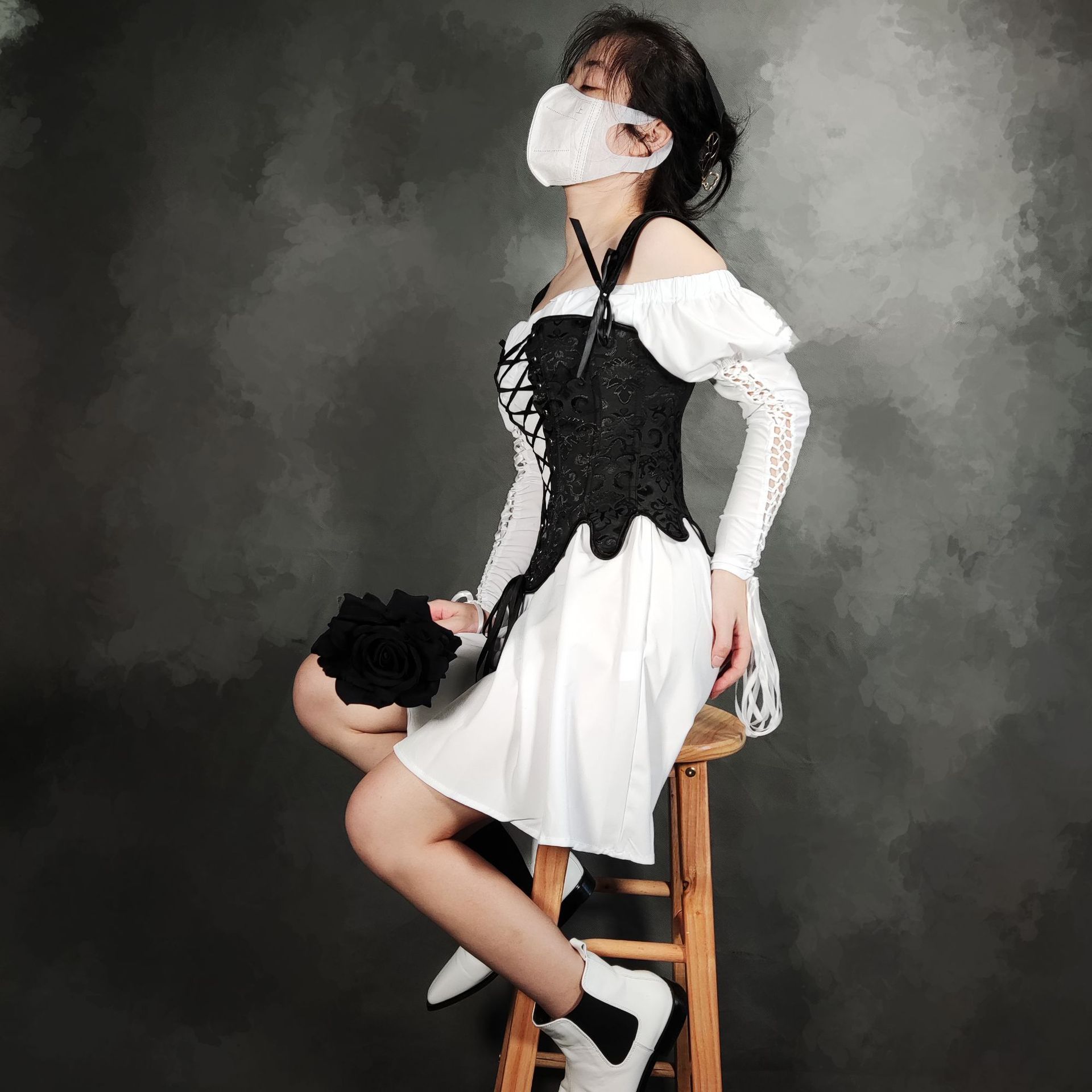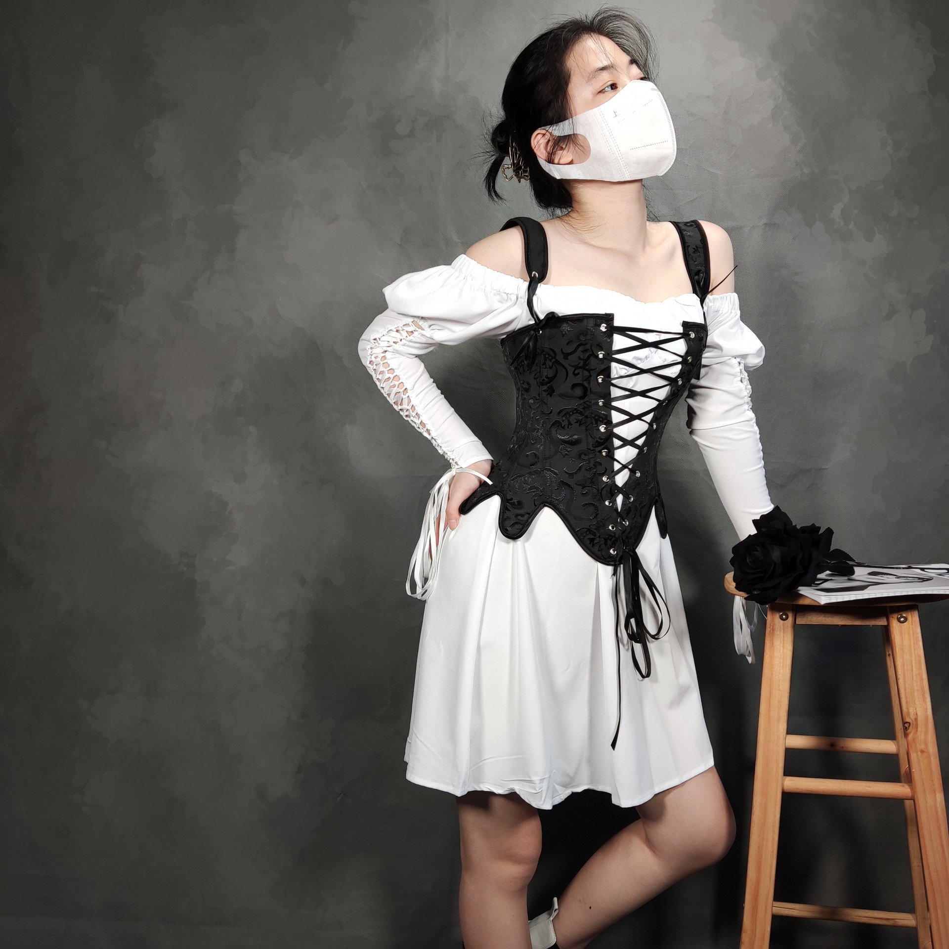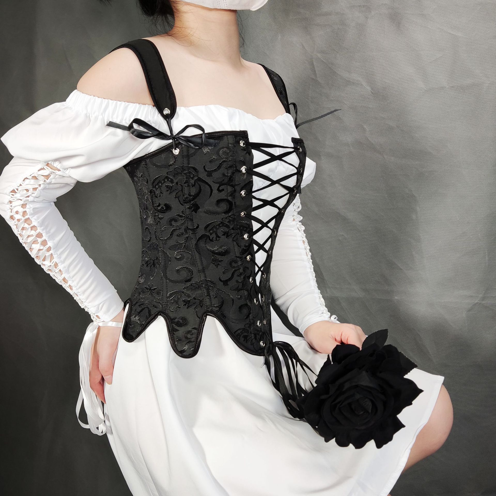 1008 Autumn New Fashion Strap Fish Boned Deflower Petals Waist Corset Body Sleeveless Sexy Dress HZ1208
