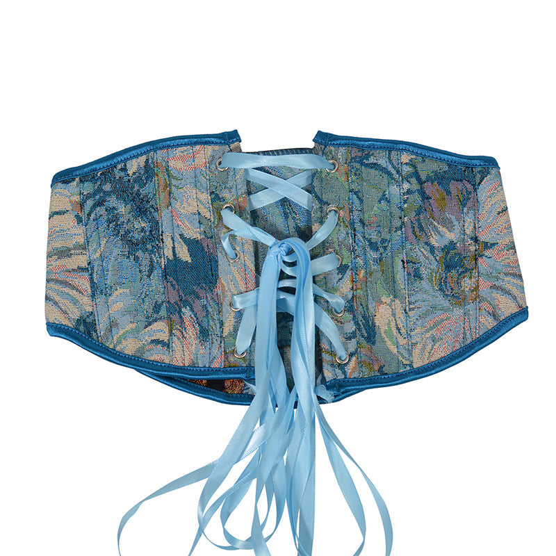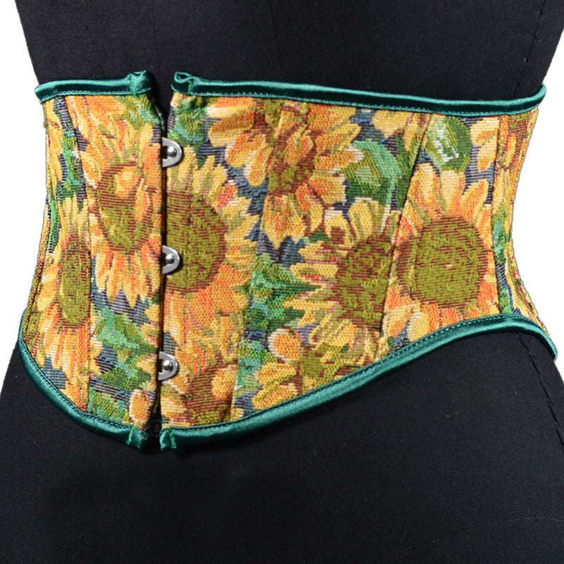 16Cm Short 3 Buckle New Oil Painting Monet Garden Belt Short Belt Outside The Fish Bone Support Strap Girded Waist HZ1208