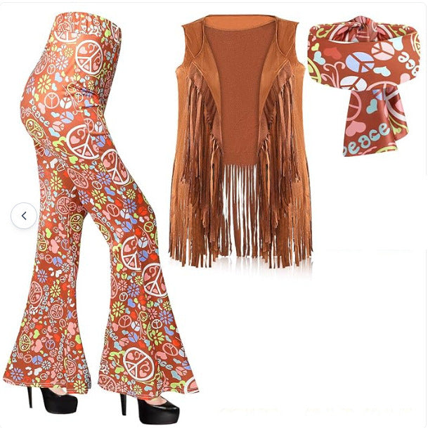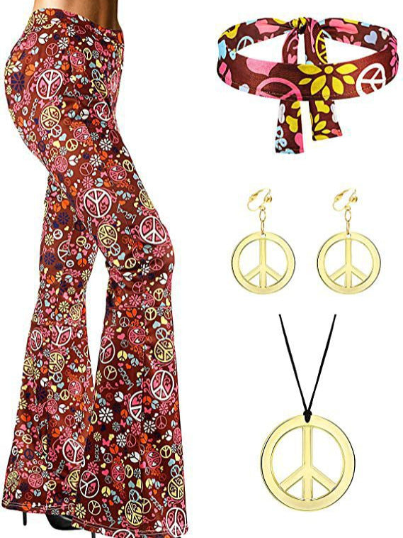 2025 Hot Women's Hippie Clothing Fashion Wide Leg Horn Pants Clammed Trousers + Headscarve HZ1208