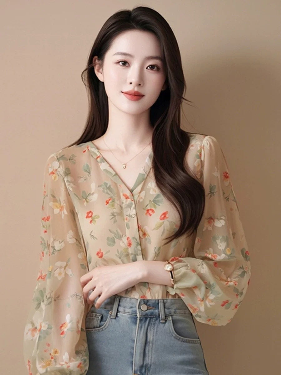 2025 New Burst Spring Summer French Beauty High-End Feel Shirt Blouse Broken Snowflake Long-Sleeved Shirt Women Summer HZ1208