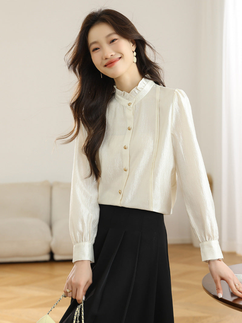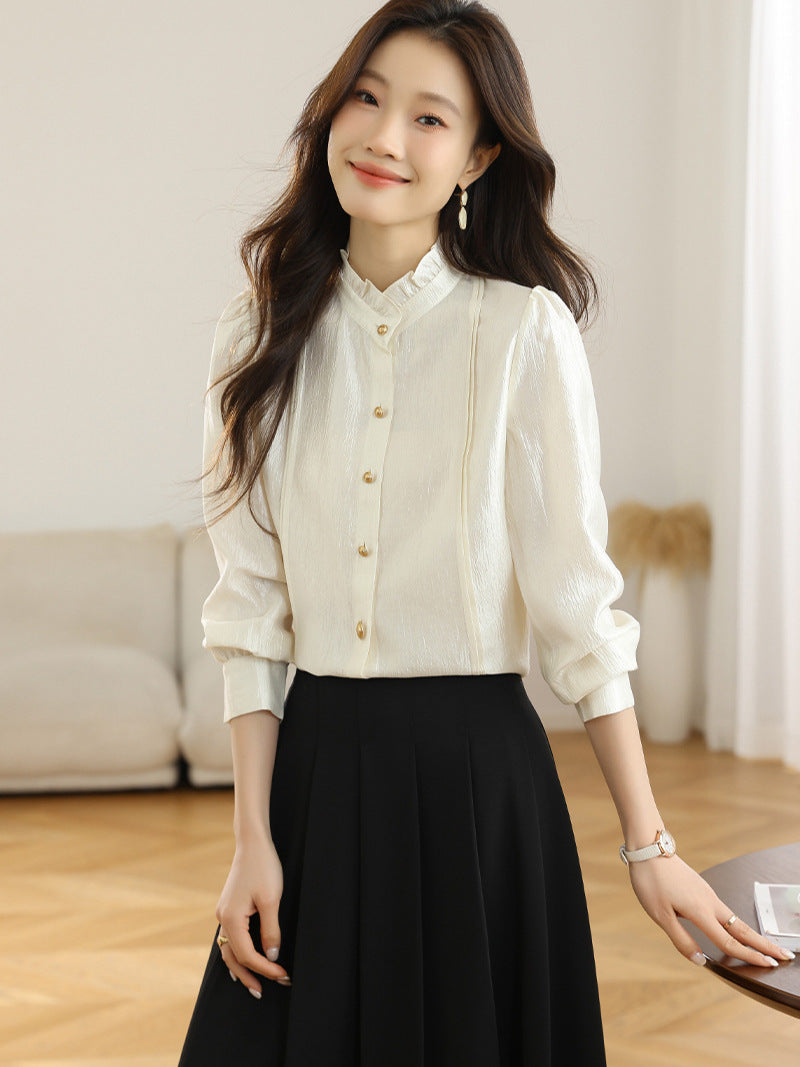 2025 Spring Dress New French Long-Sleeved Shirt Women's Lace Collar Chic Commuter Blouse Fashion Shirt Tide HZ1208