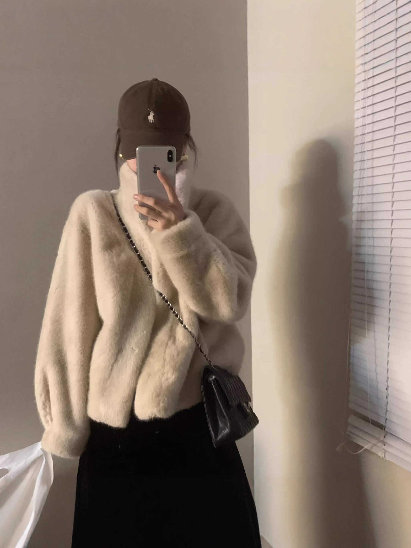 2025 Winter Marinade Short-Term Collar Fur Integrated Slings Plush Green Fur Coat Women's Lamb Hair HZ1208