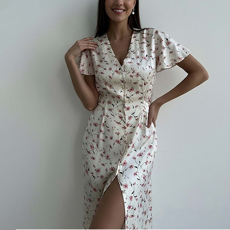 2025 Women's New Fashion Floral Blouse Sling Lotus Leaf-Side Cake Dress Suit For Women HZ1208