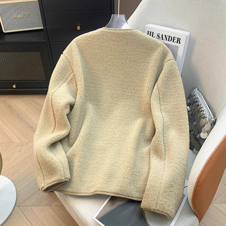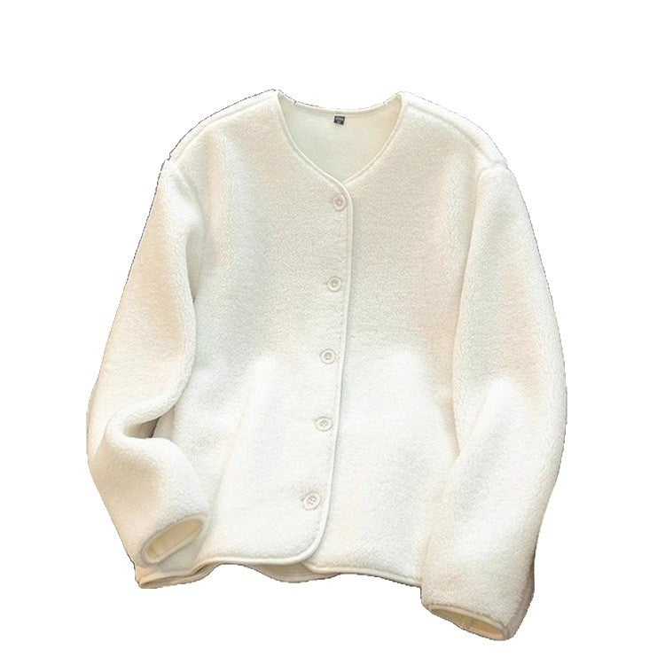 Autumn And Winter New Swaying Velvet Short Coat Women V-Neck Casual Thicken Warm Lamb Velvet Loose Coat Tide HZ1208