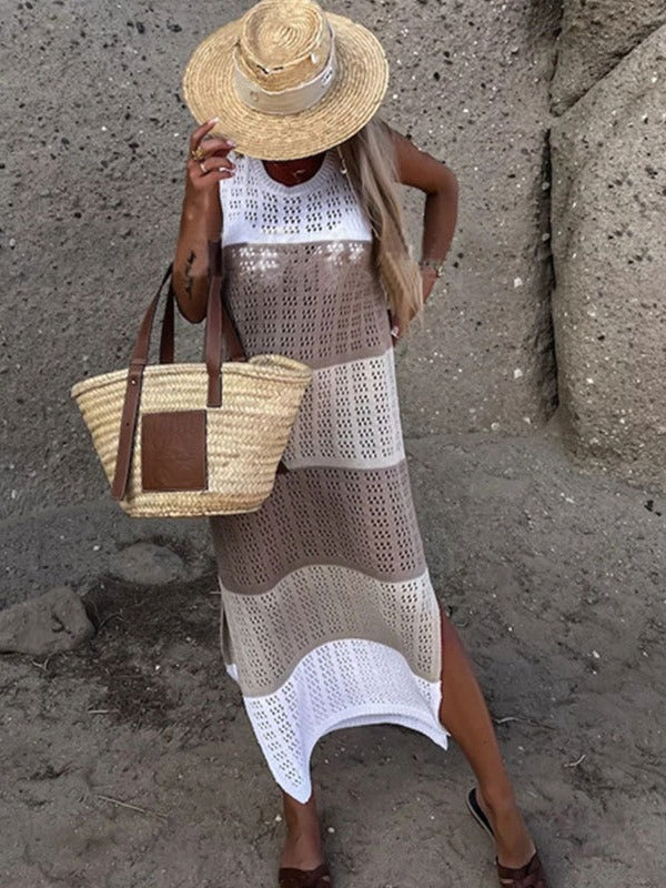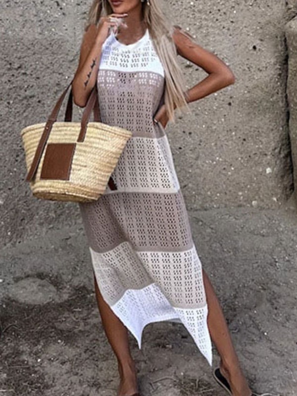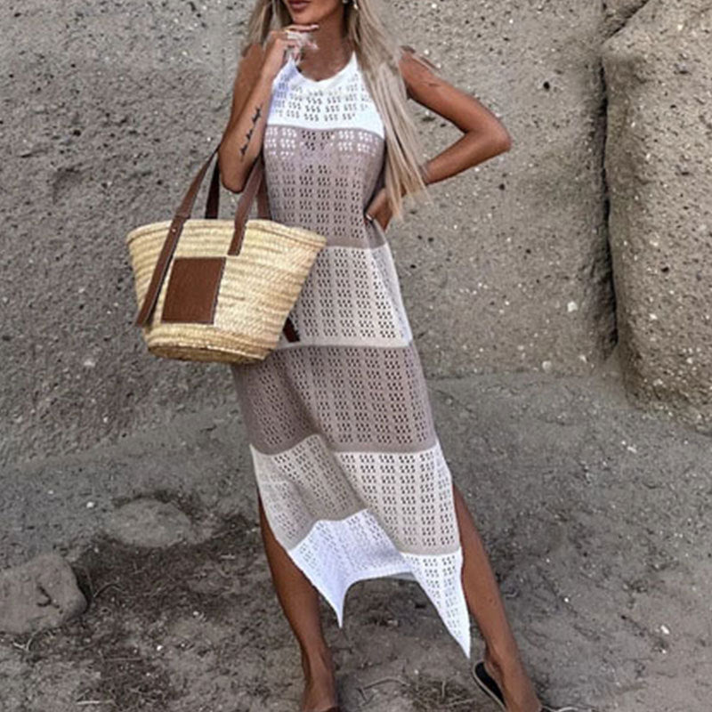 Autumn Fashion Trend Women's New Round Neckless Sleeveless Under The Pended Fork Knitting Dress HZ1208