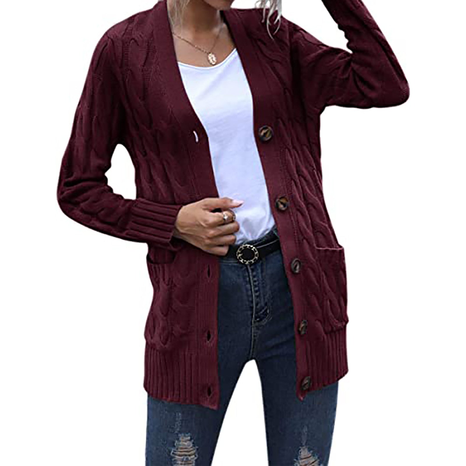 Autumn/Winter 2025 New Women's Casual Cardigan Jacket Solid Color Mah-Button Cardigan Sweater Women HZ1208