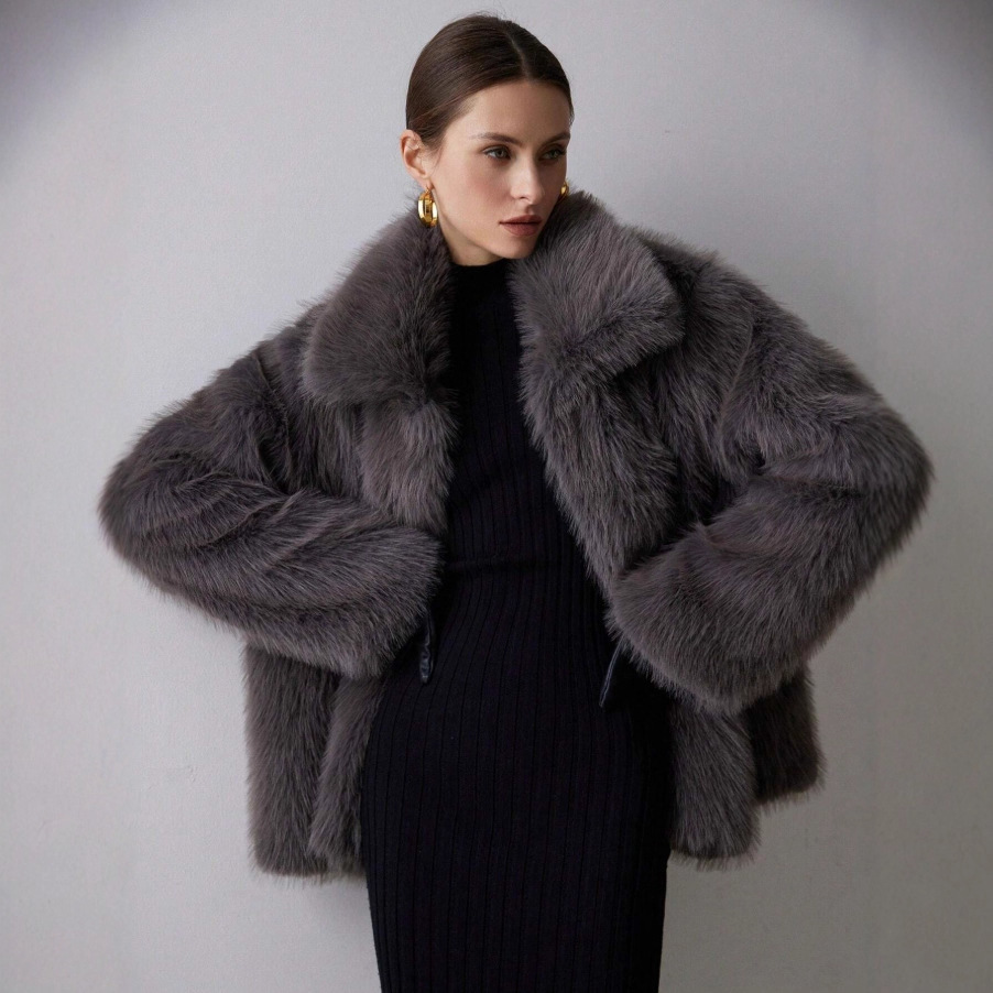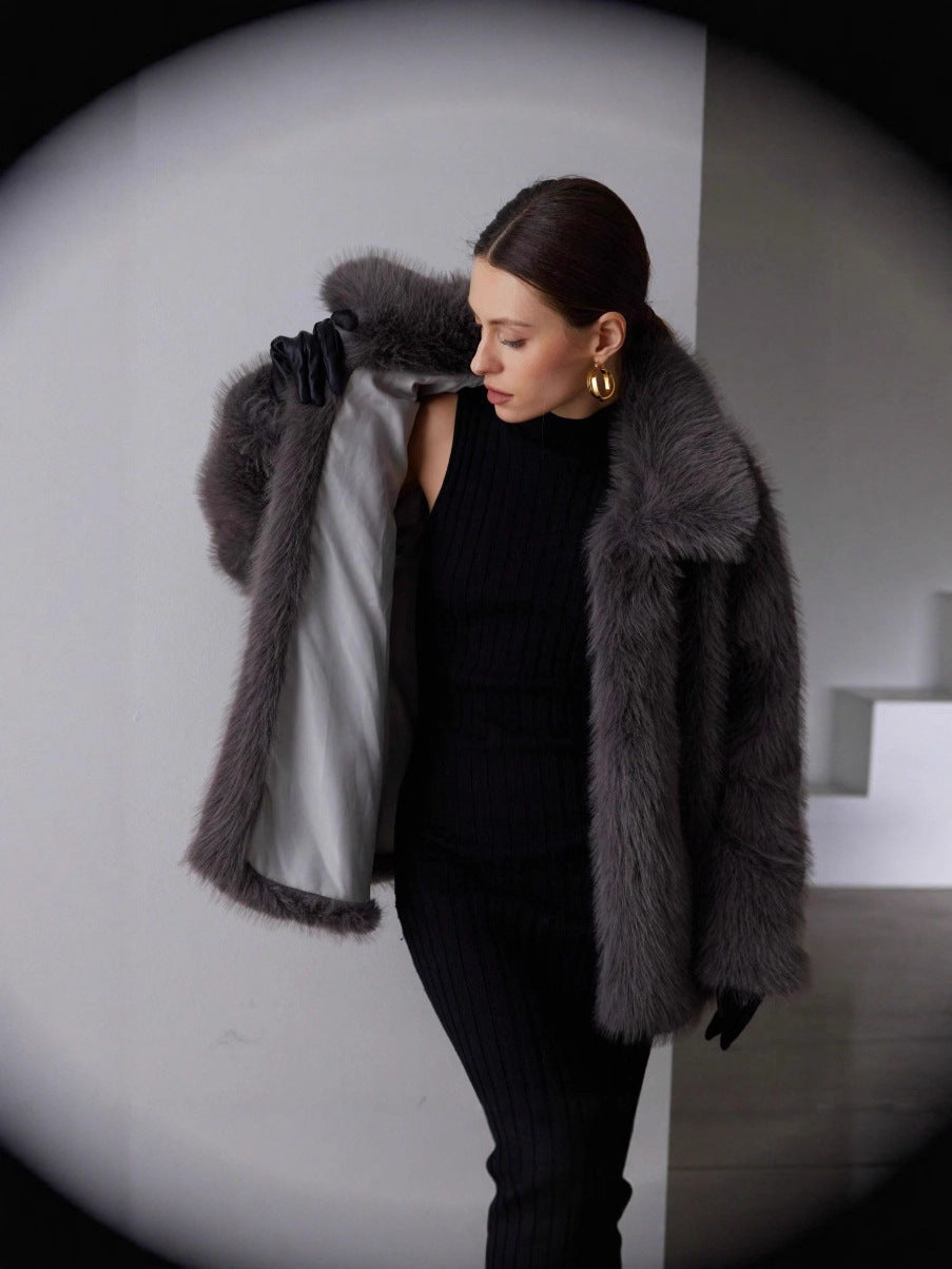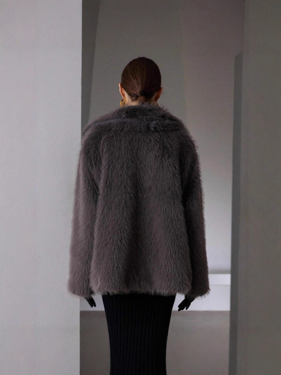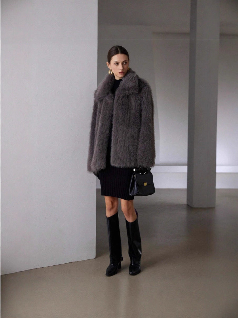 Autumn/Winter 2025 Solid-Color Artificial Fur Coat Female Coat Elegant Temperament HZ1208