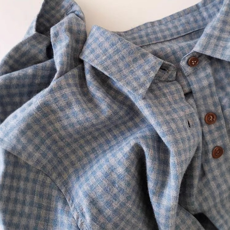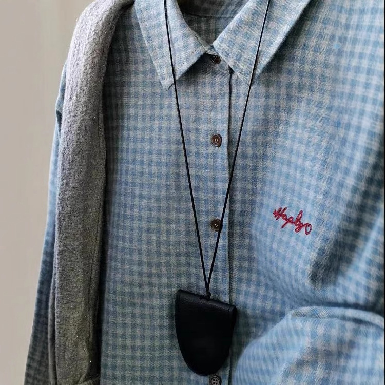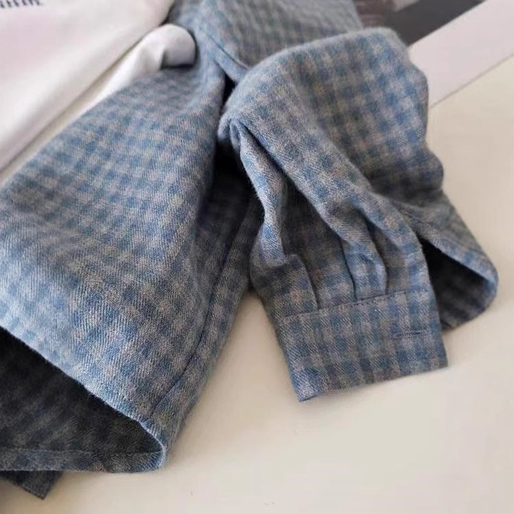 Blue Gray Plaid Shirt Women 2025 Spring And Autumn New Loose Lazi Folding Shirt Coat Top HZ1208