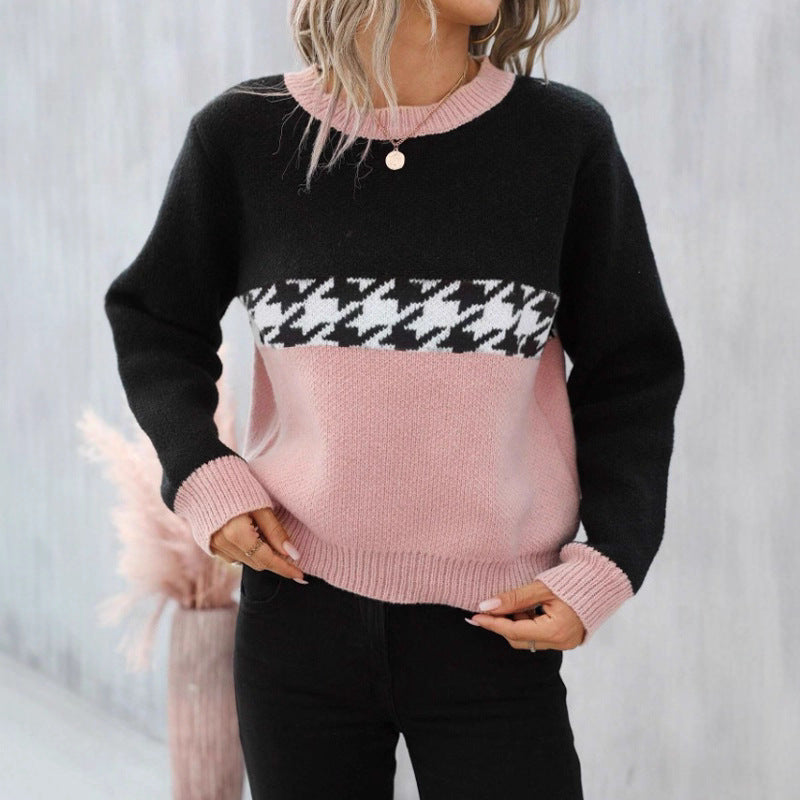 Women's Cotton Cashmere Lattice Half-High-Collar Sweater Korean Version Of The Student's Dress Dress Nice Hair Knitted Shirt HZ1208
