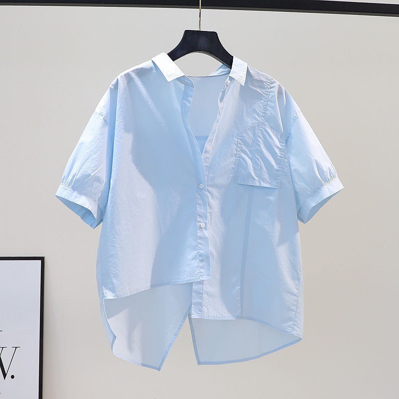 Cotton Simple Summer Thin Short-Sleeved Shirt Women 2025 New Fashion Loose Long Pocket Cardigan Shirt HZ1208