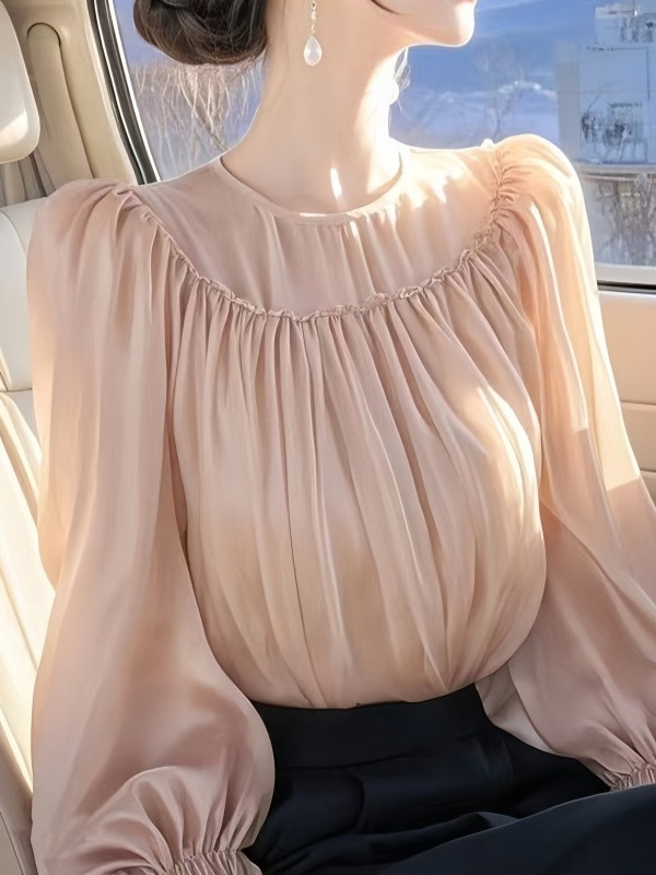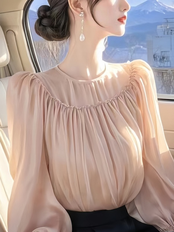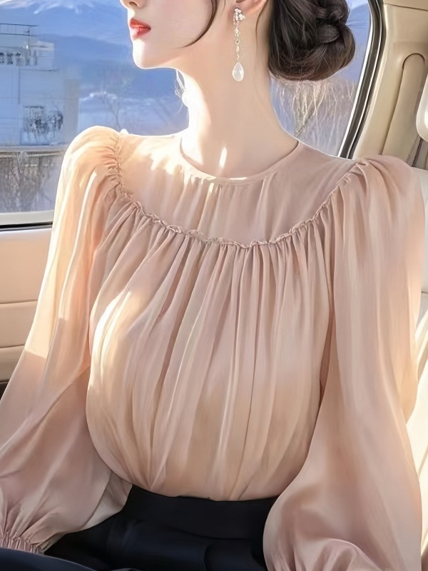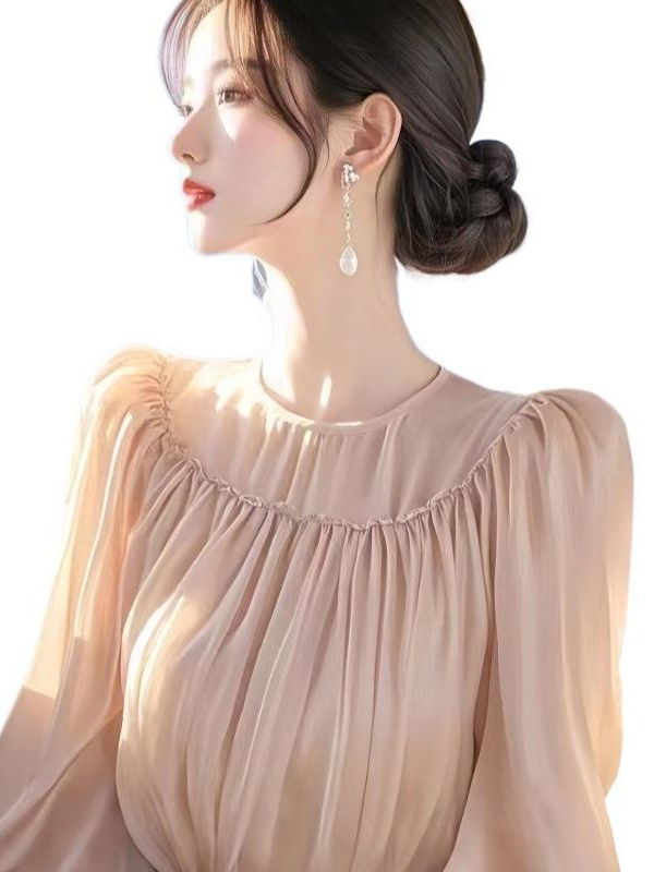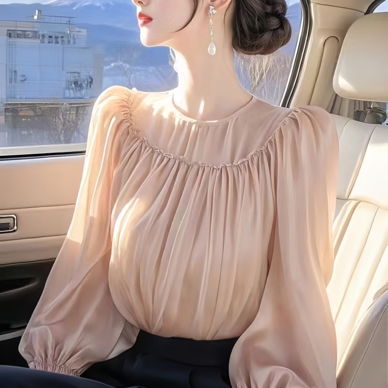 French Design Temperament Wood Ear Top Lady 2025 Spring Super Beautiful Waist Chiffon Tide HZ1208