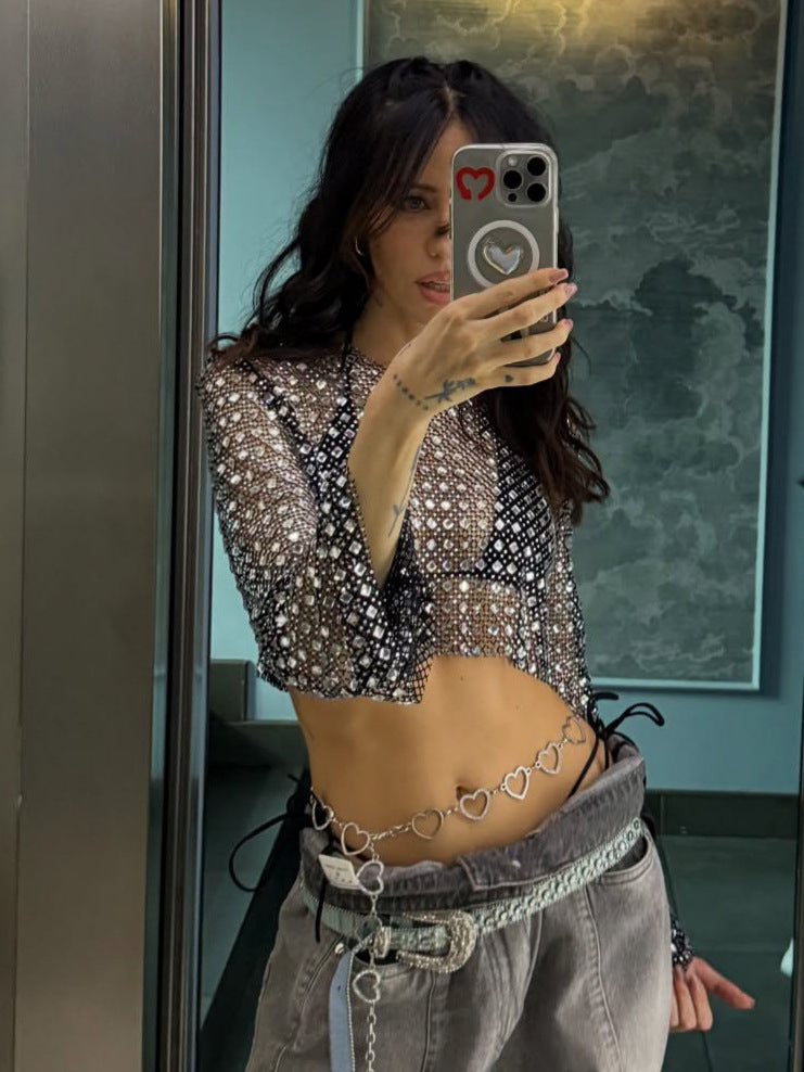 French Hottie Blouse Female Feeling Hollow Short Umbilked Pure Style T-Shirt Horn Sleeve HZ1208