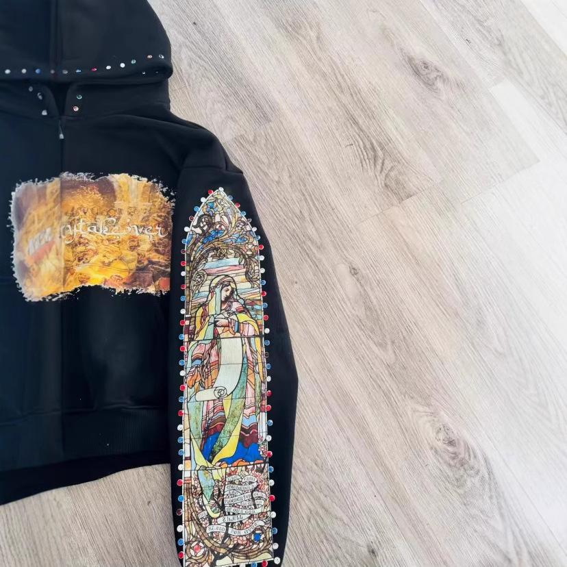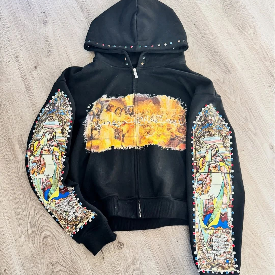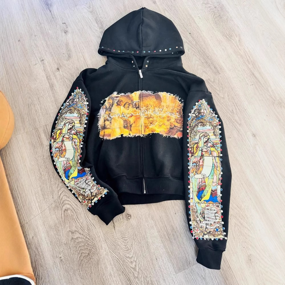 New 2025 New Trendy Street Loose Hooded St. Women's Printed Sweater Autumn And Winter Zipper Coat Top HZ1208