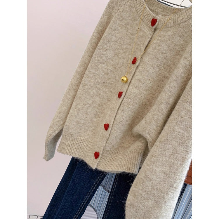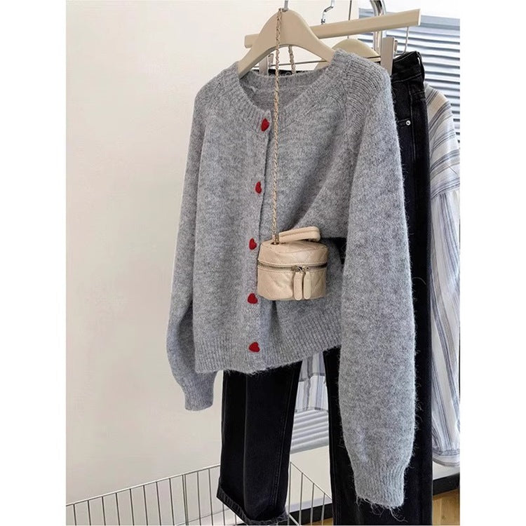 Soft Glutinous Casual Round-Neck Love Buckle Sweater Coat Women's New Loose College Style Knitted Sweater Tops In Autumn HZ1208