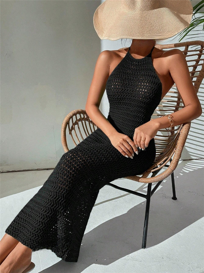 Spring And Summer New Body Repair Neck Tie Bare Back Knitted Sweater Dress HZ1208