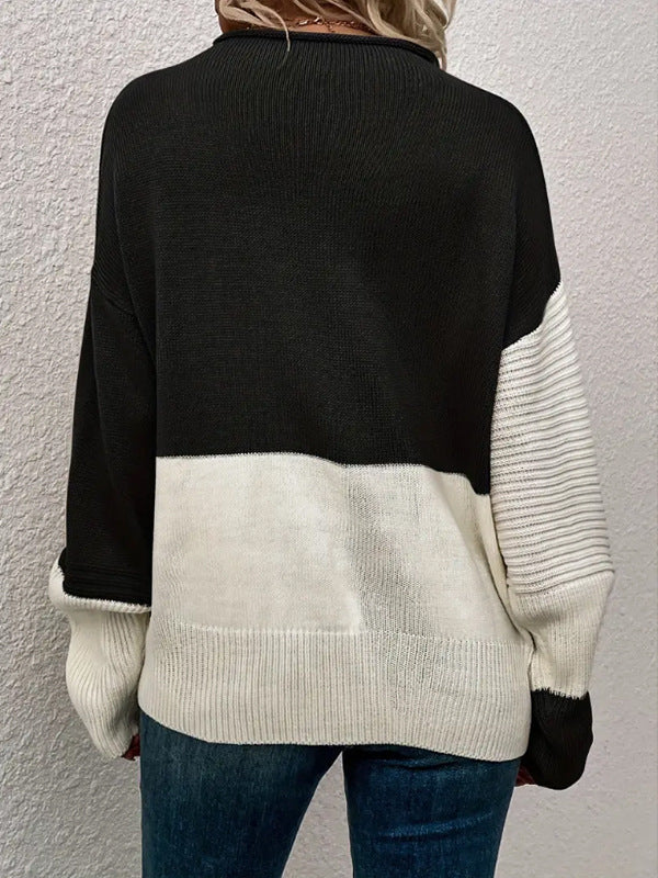 Women's Sweater Casual Loose Knitted Shirt Color Long-Sleeved Collar Knitting Top HZ1208