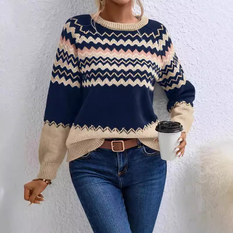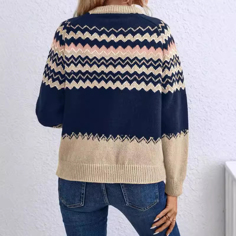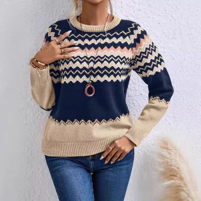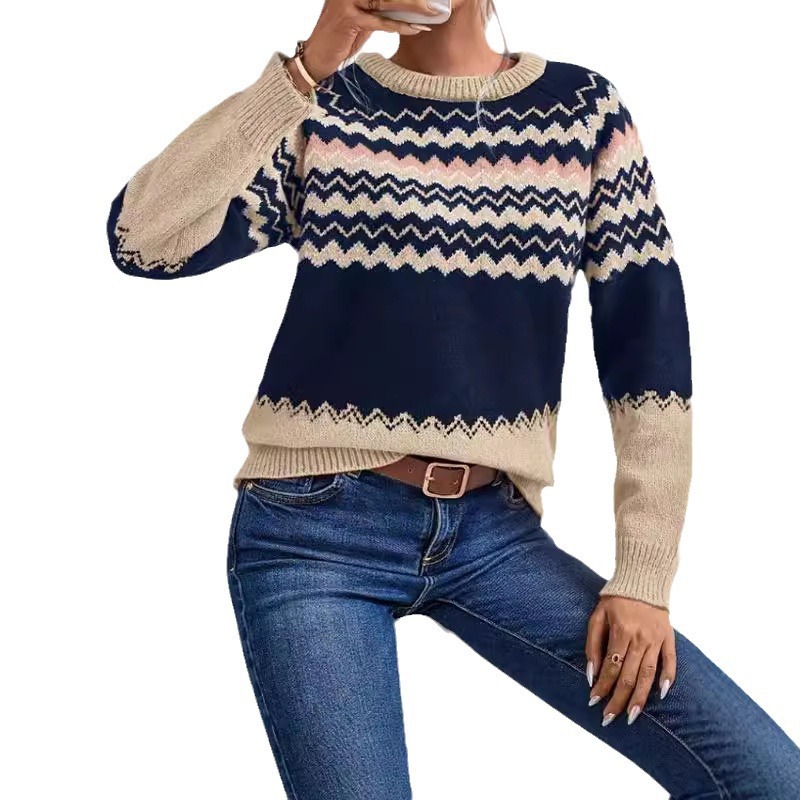 Women's Sweater Fashion Round-Neck Knitted Top Classic Striped Knitted Shirt HZ1208