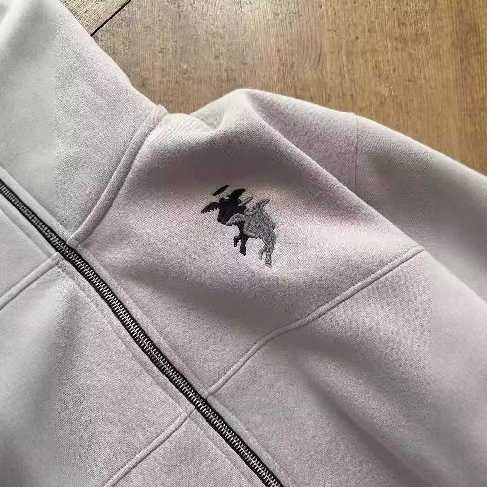 Zip-Up Hoodie Double-Headed Zippered Niche Design New Eyes Can See Simple Embroidery Coat Guard HZ1208